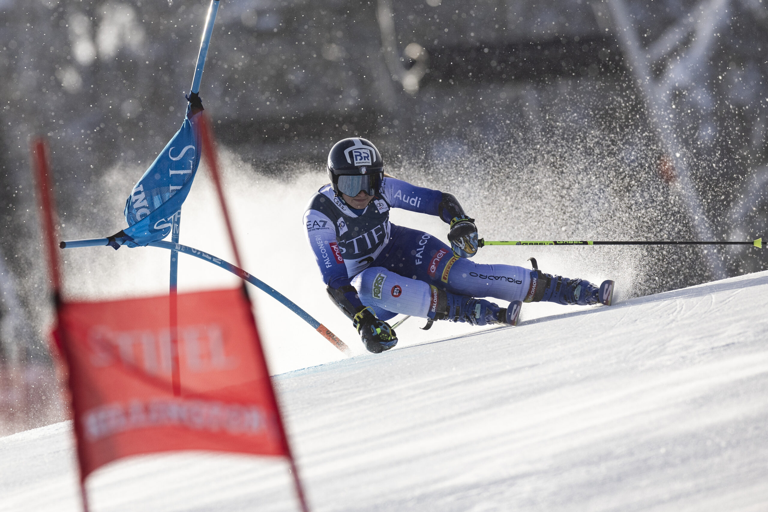 In casa azzurra grande rammarico per Federica Brignone: partenza alla sua maniera, all’attacco, tempi intermedi sempre in luce verde, poi prima del ripido finale si mette di traverso, finisce lunga, senza riuscire a rimanere nel tracciato.