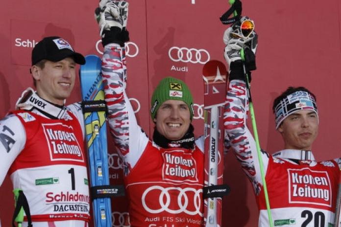 Non ci poteva essere film più bello per lo sci oggi. Indipendentemente dalla propria ‘fede’. Marcel Hirscher, in uno stadio dello slalom gremito in ogni angolo, tutto dipinto di bianco e rosso, ha vinto il gigante con una manche ‘alla morte’, davanti a Hannes Reichelt e Marcel Mathis. Gara vera, perché Mathis ha fatto una seconda manche da urlo e Hirscher ha dovuto rischiare per stargli davanti. Tre uomini del Wunderteam sul podio, due donne nello slalom vinto da Michaela Kirchgasser (prima vittoria in Austria). Dopo sei anni la Coppa del Mondo torna in Austria. Un copione perfetto. Alla fine l’uomo più discusso, l’uomo della polemica inforcate, nei momenti di maggiore pressione (come nella Night Race di Schladming) è stato più forte di tutto e di tutti. Così Hirscher oggi conquista Coppa di gigante (davanti a Ligety e Blardone) e Coppa del Mondo generale a pochi minuti da casa sua. Domani, infatti, nello slalom, Feuz, anche se si fosse presentato al cancelletto, non avrebbe avuto speranze e Marcel ora conduce di 25 punti nella graduatoria. In serata lo svizzero ha annunciato che non parteciperà allo slalom. Hirscher ha rifilato 19 centesimi a Reichelt e 55 a Mathis. Al quarto posto Alexis Pinturault poi, nell’ordine, Fanara, Grange, Simoncelli (settimo a 1.97), Matts Olsson, Missillier, Raich. Blardone è ‘deragliato’ a poche porte dalla fine, Manfred Moelgg è quindicesimo, Innerhofer ventiduesimo, Giovanni Borsotti è saltato. «All’inizio avevo trovato le linee giuste, poi sul muro c’erano binari e buche ed è stata dura, sono abbastanza soddisfatto della stagione anche se ho perso alcune occasioni importanti» ha detto Davide Simoncelli al traguardo.