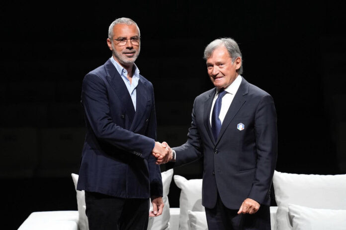 La stretta di mano fra Michele Tacchella e Flavio Roda sigilla il patto: ancora quattro anni insieme. Così Armani e Federazione Italiana Sport Invernali continuano il viaggio insieme anche per il prossimo quadriennio olimpico. Un rapporto solido, fortificato anche dalla fantastica spedizione di Milano Cortina 2026. Sono stati proprio Tacchella di Armani e il presidente Fisi Roda ad aprire questa mattina il media-day di Fisi presso Armani Teatro a Milano.