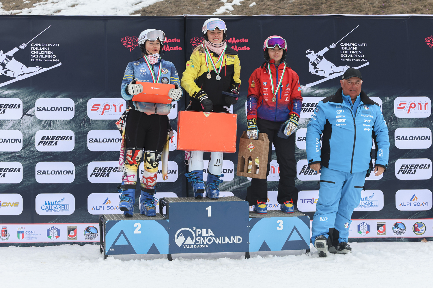 Sul pendio de La Nouva, lo slalom under 14 disputato su due manche entrambe trattate con il sale. Michelle Dal Farra (Limana) si è imposta anche tra i pali stretti dopo il titolo nello skicross. Ha concluso le due run in 1’35”64 (primo tempo nella prima, sesto nella seconda) e preceduto Mia Molling del Jochtal (1’36”50), oro nel gigante di ieri. Medaglia di bronzo per Sveva Di Gallo (Cortina) in 1’52”52.