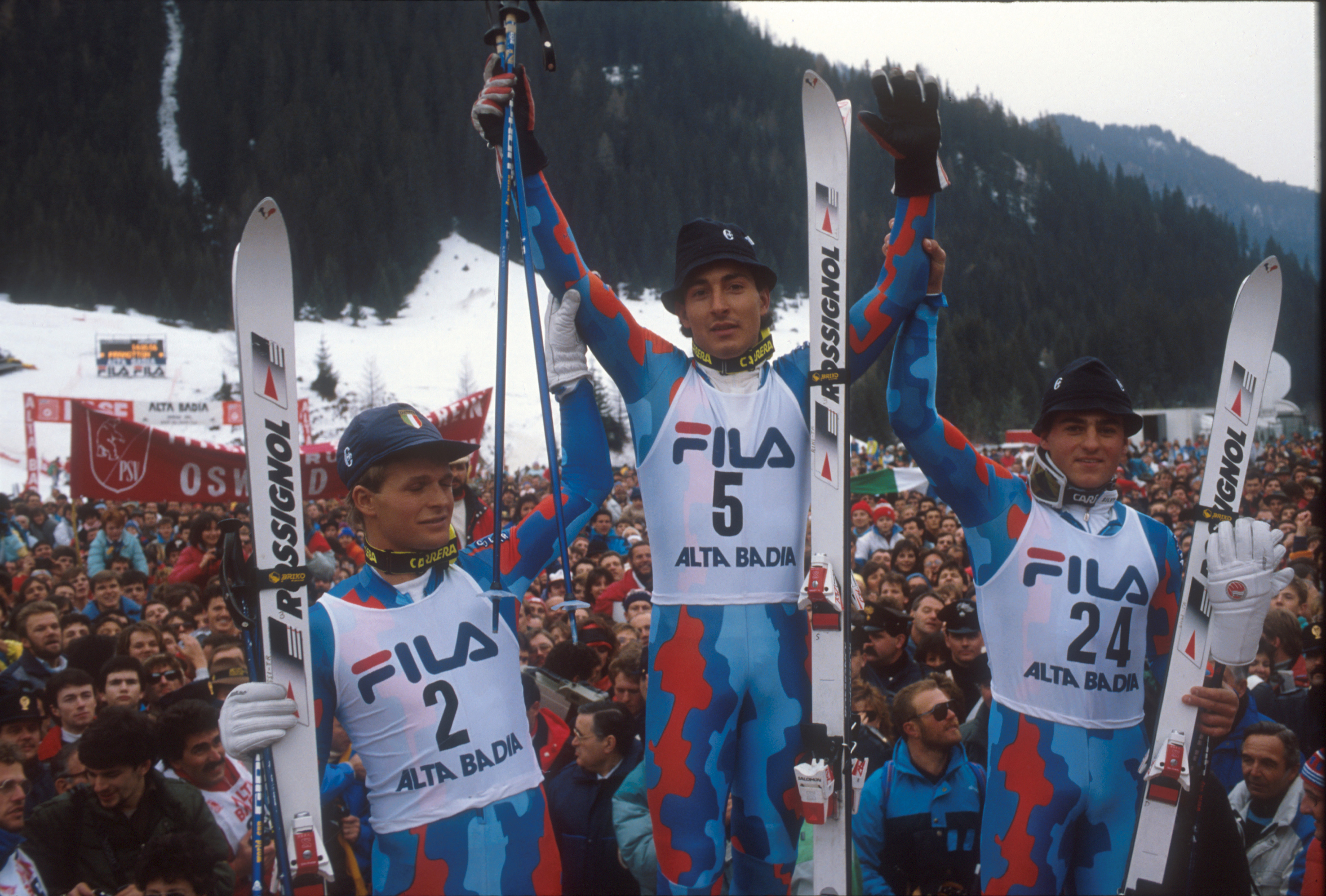 Ma resta una pagina unica. Per trovare qualcosa di simile, ma non proprio identico, bisogna risalire al 25 e 28 gennaio 1986, quindi a distanza di tre giorni: Michaela Marzola, all’epoca 19 anni e per altro pure lei gardenese, si impose nel superG di Megeve, in Francia, prima e unica vittoria in Coppa del Mondo; il 28 gennaio successivo Richard Pramotton da Courmayeur, grande campione eclissatosi troppo presto, vinceva per la prima volta nel circuito maggiore trionfando in gigante nel “tempio” di Adelboden, per altro davanti a un altro azzurro, Marco Tonazzi.