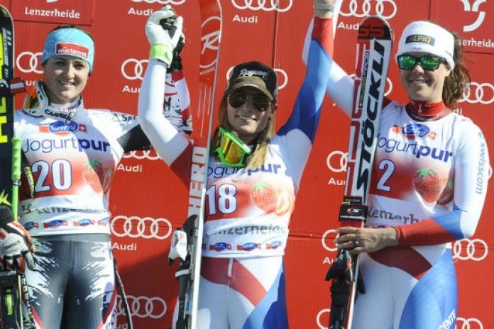 LA GUT FA LA FESTA ALLA AUFDENBLATTEN – Vittoria per Lara Gut in 1.32.31 davanti all’austriaca Elisabeth Goergl (staccata di 5 centesimi) e alla svizzera Fraenzi Aufdenblatten (a 57 centesimi). Grande festa per Fraenzi, all’addio e salutata dalle compagne di squadra. Al suo arrivo è stata spruzzata di champagne da Tina Weirather e accolta nientemeno che da Didier Cuche. Un addio col podio… mica male.