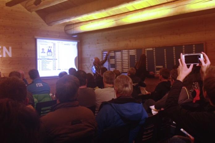 Si è da poco conclusa la riunione di giuria per la discesa libera di domani. Nel Race Office di Selva Val Gardena sono stati comunicati gli orari e tutte le indicazioni, oltre al classico sorteggio dei pettorali di partenza. Apertura con i complimenti per Franz Gamper, il tecnico altoatesino che oggi sulla Saslong ha portato tre norvegesi sul podio.