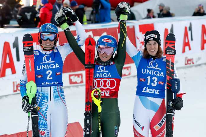 Ancora Mikaela Shiffrin. La statunitense ha ripreso la corsa, se mai si fosse davvero ‘rilassata’ un po’ in questa fase della stagione. Best crono anche nella seconda manche e vantaggio che sale da 26 a 61 centesimi su Petra Vlhova che pure ha fatto il suo, siglando il secondo tempo anche nella seconda discesa. I margini salgono a 1.72 già sul terzo gradino del podio con una raggiante Michelle Gisin che recupera cinque posizioni, quarta Katharina Liensberger, a 1.88, quinta Christina Ackermann, le ultime che sono riuscite a rimanere sotto i due secondi. Recuperano una posizione Federica Brignone, tredicesima e Irene Curtoni, quattordicesima; a punti anche Lara Della Mea, ventiquattresima.