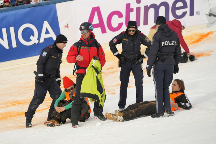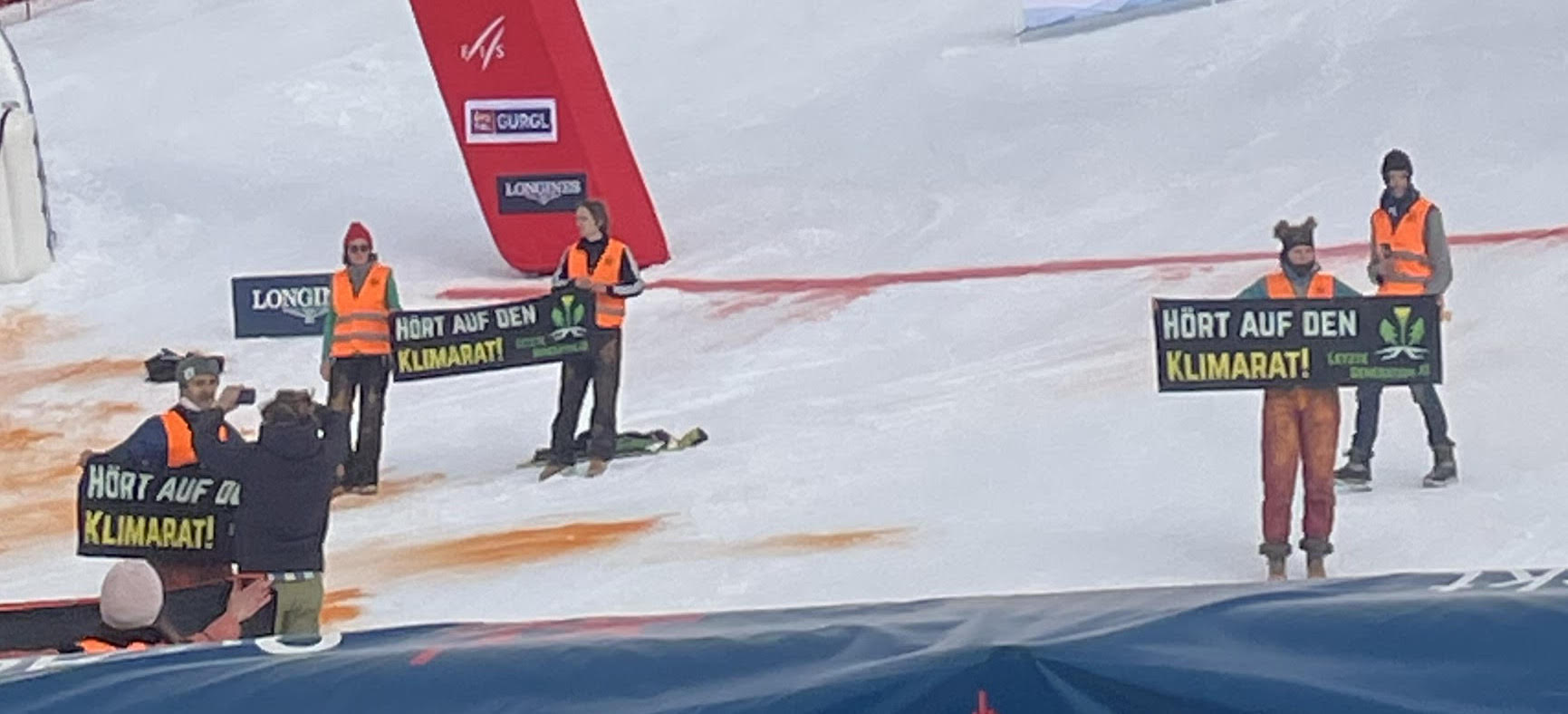 GURGL LIVE – Ci mancava anche la rivolta ambientalista in quesito pazzo inizio di stagione per la Coppa del Mondo maschile. Dopo le cancellazioni di Soelden e Cervinia/Zermatt causa metri avverso, oggi a Gurgl durante la seconda manche dello slalom alcuni facinorosi abientalisti hanno scavalcato i materassi e le transenne della finish area e sono entrati vicino alla linea del traguardo con cartelloni. «Ascoltate Klimarat!». Quest’ultimo è il nome di un’associazione austriaca. Per una decina di minuti la gara è stata interrotta. Nello stupore generale, non sono intervenuti subito i poliziotti austriaci che poi invece hanno portato fuori dal parterre i giovani manifestanti.