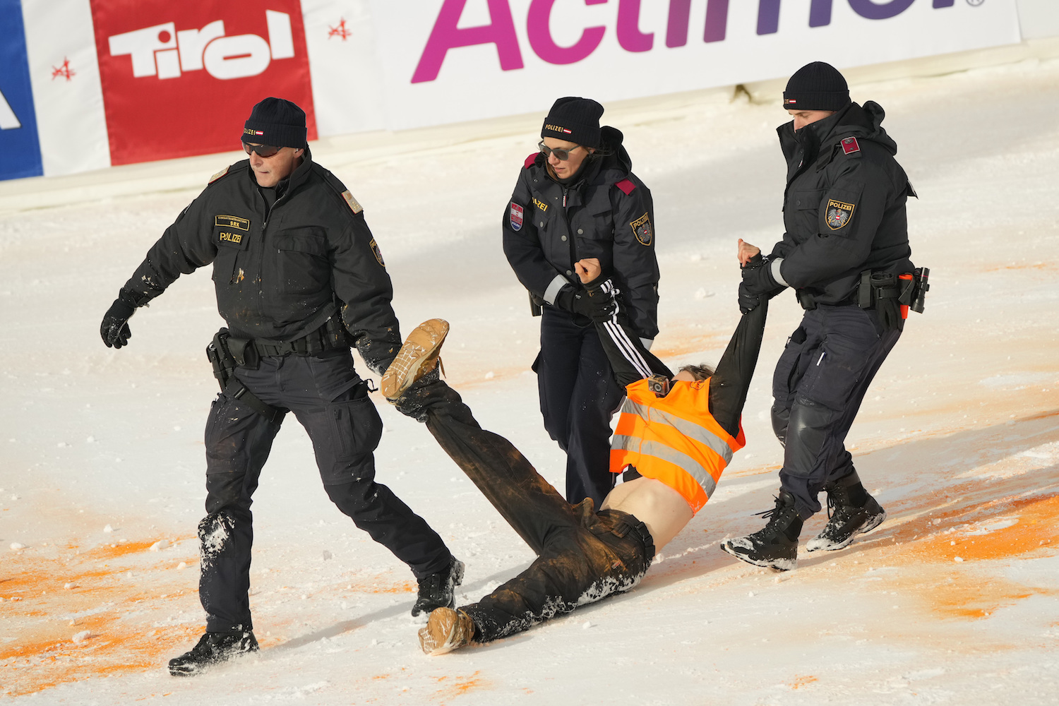 Fischi del pubblico e soprattutto si è notata la reazione di alcuni atleti. In prima linea abbiamo notato i norvegesi. Sebastian Foss-Solevaag è entrato nella finish area è ha portato via di peso un manifestante per un braccio. Henrik Krstoffersen ha inveito contro i rivoltosi e si stava lanciando verso di loro con veemenza: è stato fermato. «Idioti che rovinano lo sport», ha poi affermato lo scandinavo. E’ intervenuto a fine gara Markus Waldner di Fis sulla questione: «Serviranno più controlli, credo non sarà l’ultima occasione per queste manifestazioni». E cosa hanno detti i rivoltosi? Ha parlato uno di loro e ha affermato: «Attenzione, noi piace lo sci. Siamo semplicemente venuti a manifestare qua perchè in Austria questo è un evento seguitissimo. Non era una azione contro gli sport invernali». Lo sci in Austria è talmente famoso che attira qualsivoglia tema e questione…pazzesco.