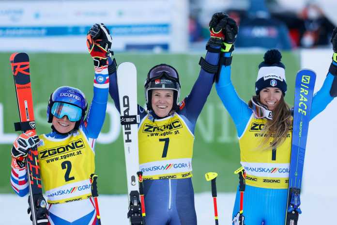 Secondo podio stagionale per Marta Bassino che dopo il terzo posto di Courchevel coglie un altro terzo posto nel gigante di Kranjska Gora, su una pista mossa e parecchio ondulata che forse meritava di essere preparata in modo differente e bagnata. L’azzurra è partita cauta, poi ha imposto il suo ritmo senza però fare una grandissima differenza. Quanto è bastato però per rimanere davanti alla canadese Valerie Grenier che ha recuperato ben quattro posizioni fermandosi però ai piedi del podio per sette centesimi.