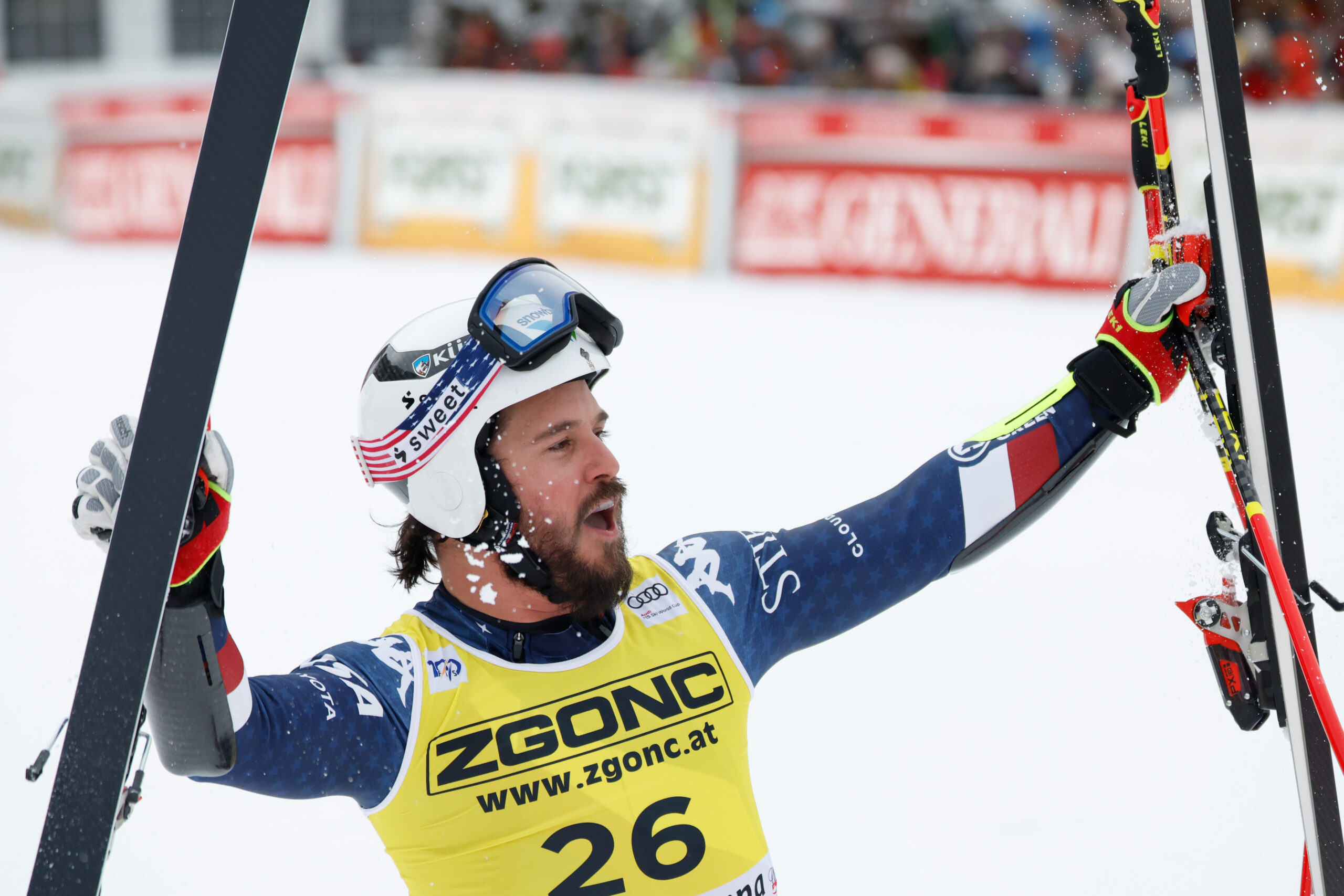 Nonostante sia partito col pettorale 26, Goldberg ha fatto registrare i migliori tempi assoluti nei primi due settori. Per un solo centesimo è arrivato dietro Mattia Casse: «Ho solo creduto in me stesso e sciato bene. La tracciatura non era particolarmente selettiva, non c’erano grandi pendenze, solo un paio di curve insidiose. Ho provato a rimanere in controllo e ha funzionato».
