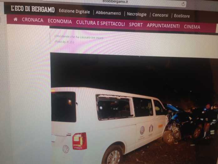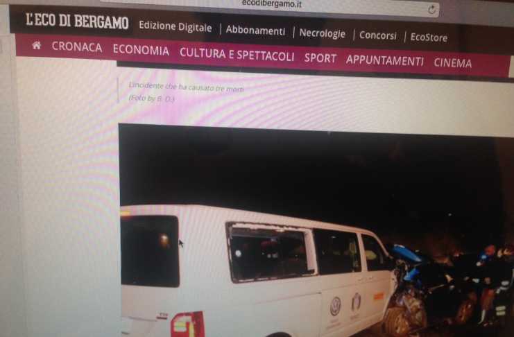 Una tragedia questa notte sulla Autostrada A4 in zona Seriate (Bergamo). Come riportato da ecodibergamo.it, in precedenza ad un incidente, si era creata una coda, in quanto i mezzi di soccorso stavano portando aiuto alle persone coinvolte. Nel mentre è sopraggiunto un pulmino della FISI. Il conducente, che non si è accorto presumibilmente della coda in essere, ha centrato una Suzuki Swift. Nell’auto, ridotta ad un groviglio di lamiere per l’impatto con l’auto davanti, c’erano tre ragazzi che sono morti sul colpo. Si tratta di Alberto Casagrande e Antonio Ago, 24 anni, e Daniela Ago, 22. Il pulmino era condotto da V.E.