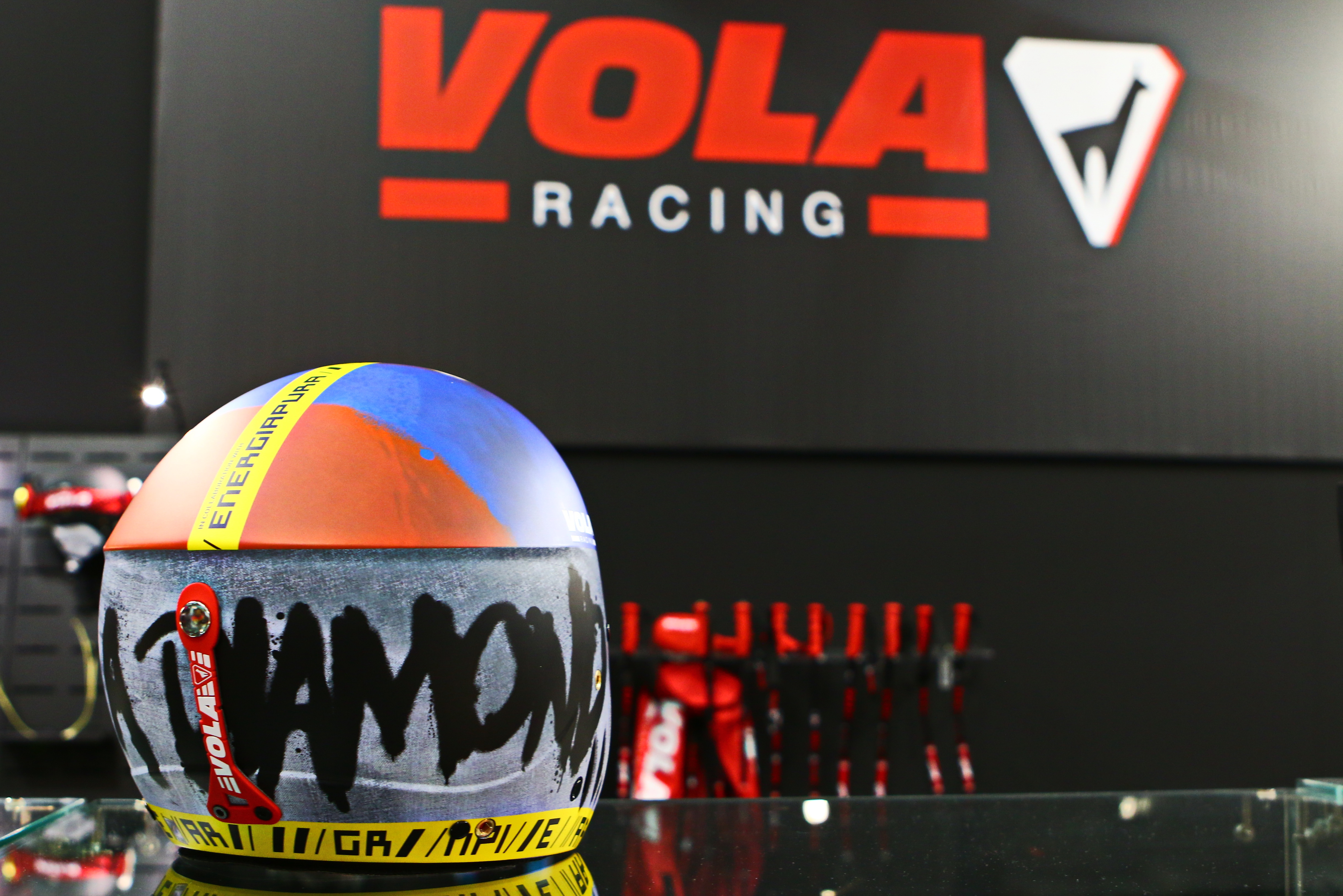 La collezione Diamond è l’ultima stravagante firmata Energiapura. Giacca, pantalone, tuta da gara. E questa volta anche il casco omologato FIS, realizzato in collaborazione con l’azienda francese Vola, distribuita in Italia proprio da Energiapura. Un diamante, colori brillanti e la scritta Like a Diamond presente ormai anche sulla campagna social. Un altro accessorio che va ad aggiungersi a tutta la linea di abbigliamento.