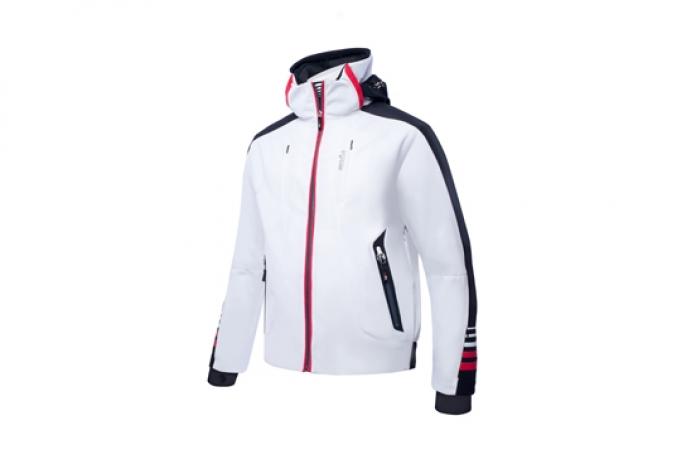 La giacca è dotata di aereazioni laterali, cappuccio staccabile regolabile, ghetta interna, zip impermeabili, aggancio con pantalone INU2107, passante per pollice e tasca porta cellulare. Fit slim. Prezzo al pubblico consigliato: 922 euro.