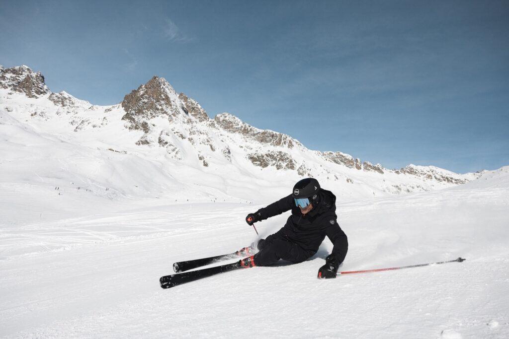 Elemento distintivo della linea è il topsheet in acciaio inox, che contribuisce sia all’estetica premium sia al comportamento sulla neve. L’acciaio garantisce infatti rigidità e stabilità, permettendo allo sci di mantenere precisione e controllo anche quando la velocità aumenta.