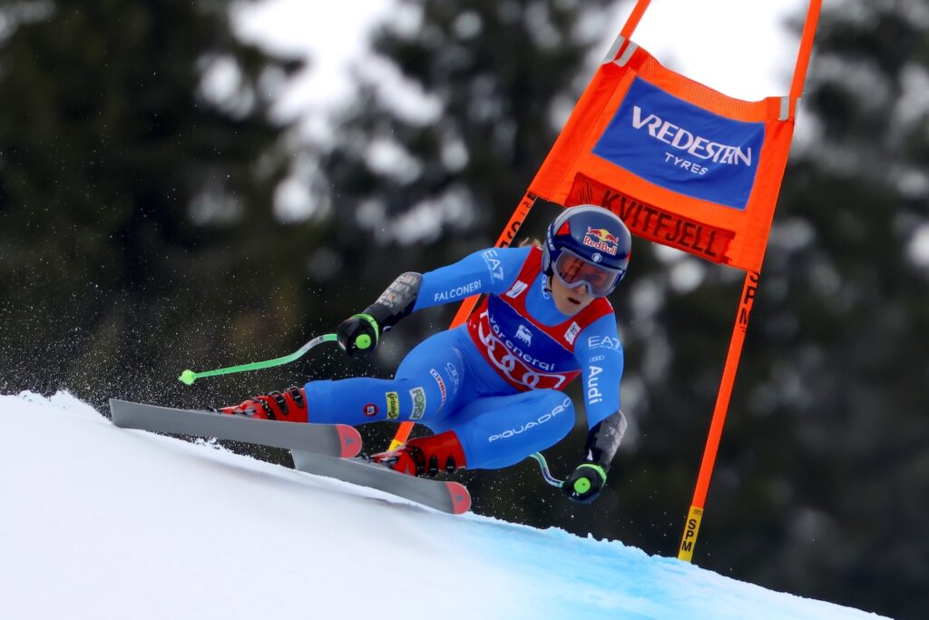 Pigliatutto la bergamasca, autrice questa mattina di una bella gara sulle nevi di Kvitfjell. Alcuni passaggi precisi, altri un po’ al limite, ma la sciata di Sofia è questa. Ha portato al traguardo una solida gara, si è messa al comando con ampio margine e ha di fatto subito chiuso i conti con la coppa di specialità, senza neppure attendere la discesa di Alice Robinson, la diretta avversaria per la coppa.