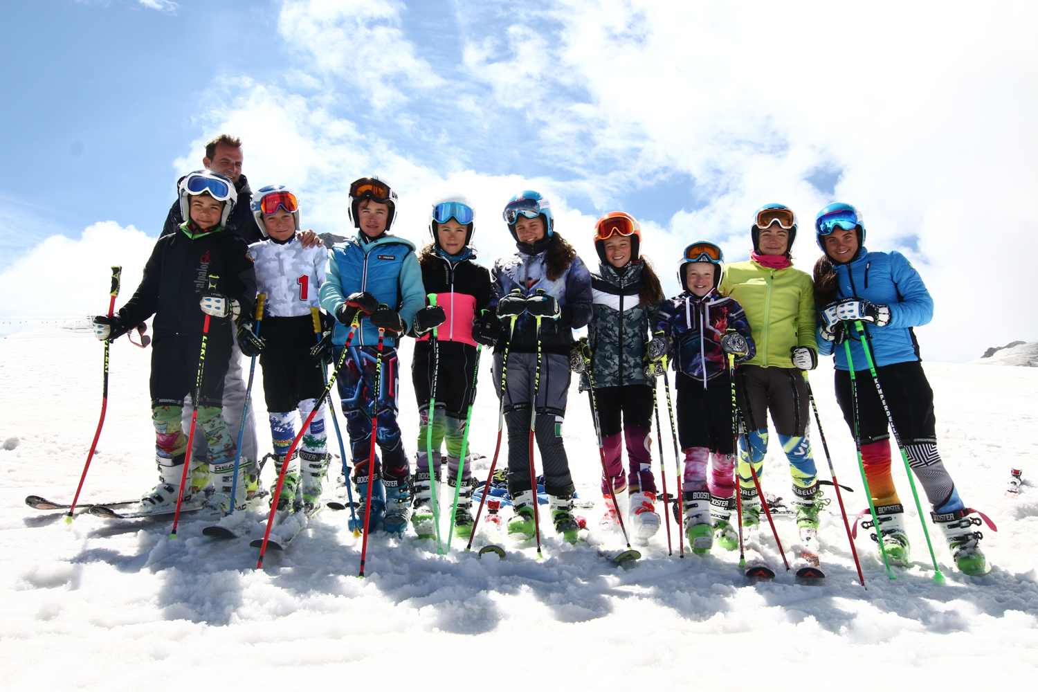 Al Passo dello Stelvio la sveglia suona all’alba. Alle 6 apre la funivia e numerosi sci club si mettono in fila per sfruttare le migliori condizioni. Si traccia, qualche giro di riscaldamento e poi via nei pali, a trovare sensazioni e a preparare la nuova stagione. Azzurri di Coppa Europa, Osservati, sci club, gruppi stranieri e anche le tedesche di Coppa del Mondo… aspettando i gigantisti austriaci.