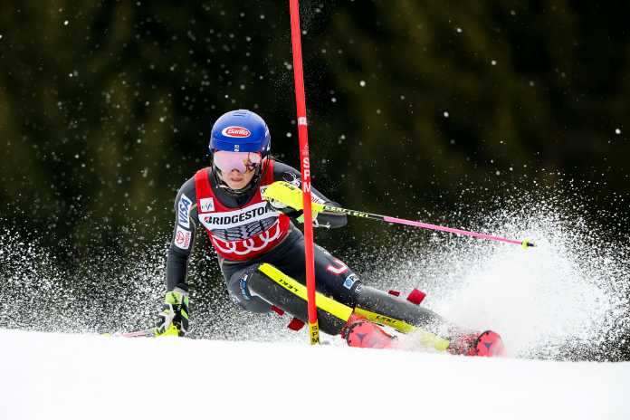 Piove a Ofterschwang e grande lavoro di salatura per gli organizzatori per la prima manche di slalom. Guida Mikaela Shiffrin, ma il margine è di soli 30 centesimi su Katharina Gallhuber e di 39 su Bernadette Schild. Dopo le due austriache restano sotto il secondo Frida Hansdotter (+0.44), Wendy Holdener (+0.46), Petra Vlhova (+0.65) e Nina Haver-Loeseth (+0.86). Le azzurre out Irene Curtoni e Roberta Midali, quindicesima Chiara Costazza, ma con il distacco di 2.13, nelle trenta Federica Brignone.