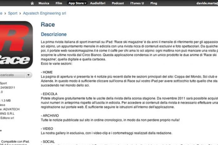 Disponibile su Apple Store l'applicazione iPad di Race ski magazine