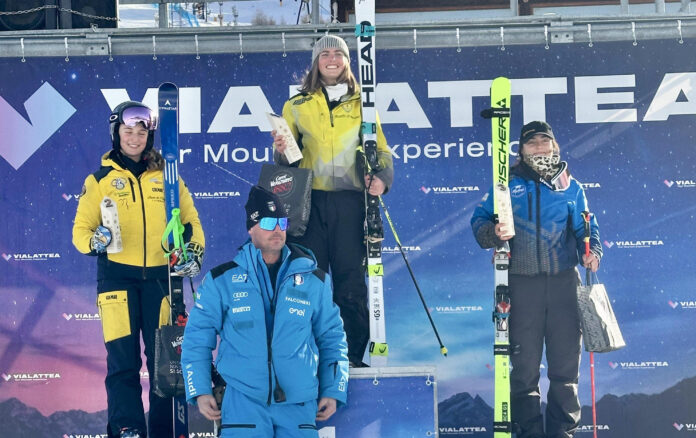 Melissa Astegiano, Carabinieri, si impone sulla Giovanni Alberto Agnelli di Sestriere nel secondo gigante Fis in programma ed organizzato dallo sci club Sestriere. La 2003 di Limone Piemonte fulmina per l’inezia di due centesimi la svizzera Lara Baumann che aveva vinto ieri. Terza a 17 l’andorrana Iria Medina Girones. Quarta la francese Laurine Lugon-Moulin.