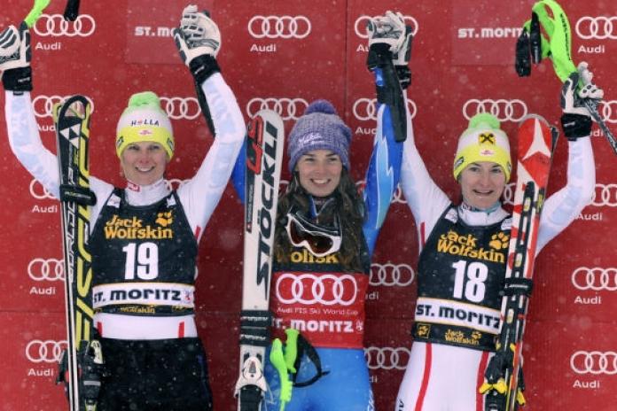 E tre! La slovena Tina Maze non si ferma e conquista la supercombinata di St.Moritz. Dopo aver domato la ‘Engiadina’ nel superG, la vincitrice dei giganti di Soelden e Aspen rimane in testa anche dopo lo slalom disputato sulla Corviglia-Suvretta. Il podio poi è austriaco: seconda Nicole Hosp, 2.02.64, e terza Kathrin Zettel, 2.02.84. Quarta Maria Hoefl-Riesch e quinta la ticinese Lara Gut, che aveva terminato ad un centesimo dalla Maze il superG, poi la tedesca Lena Duerr, l’austriaca Anna Fenninger e la canadese Marie-Michele Gagnon. Recupera tre posizioni e termina buona dodicesima Elena Curtoni, con il tempo totale di 2.04.57. Diciassettesima Daniela Merighetti che ha chiuso davanti a Federica Brignone. Ventiduesima Francesca Marsaglia, ventiseiesima Elena Fanchini, ventisettesima Lisa Agerer e trentesima Camilla Borsotti. Non è partita nella seconda Nadia Fanchini, out invece Enrica Cipriani.